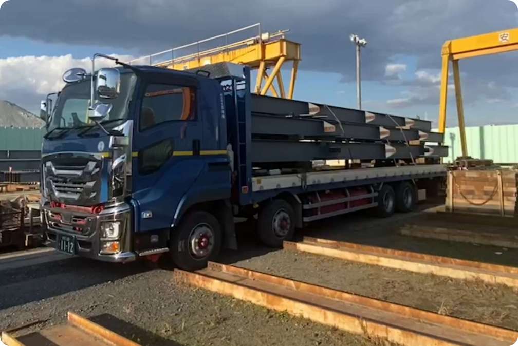 今日では鉄骨運搬、仮設材運搬とお客様の要望に応え車両を増やしてきた。